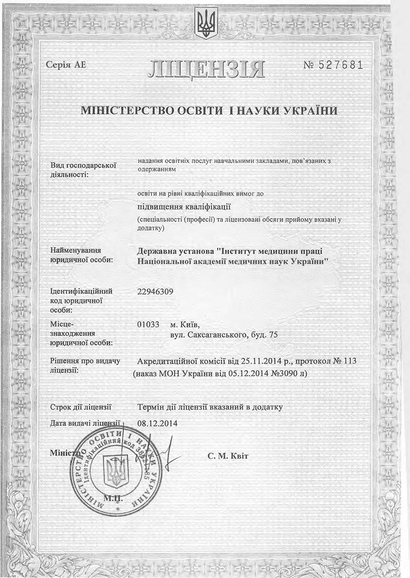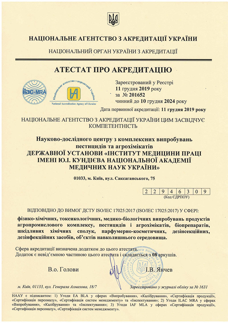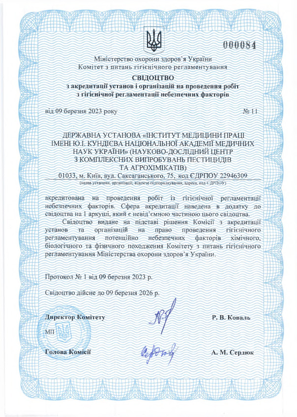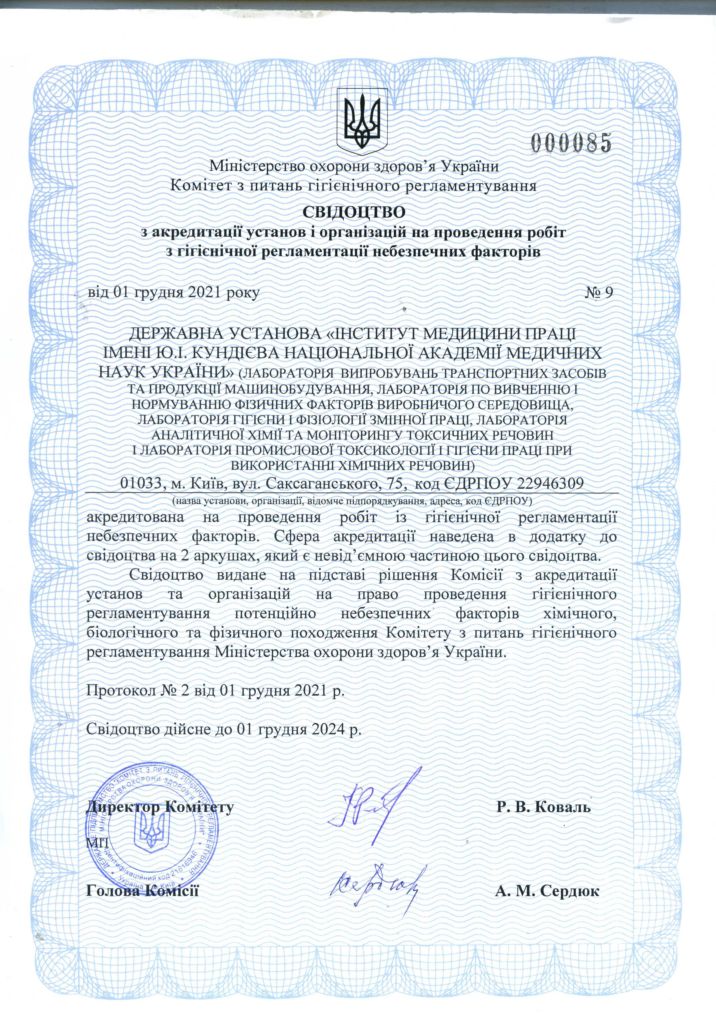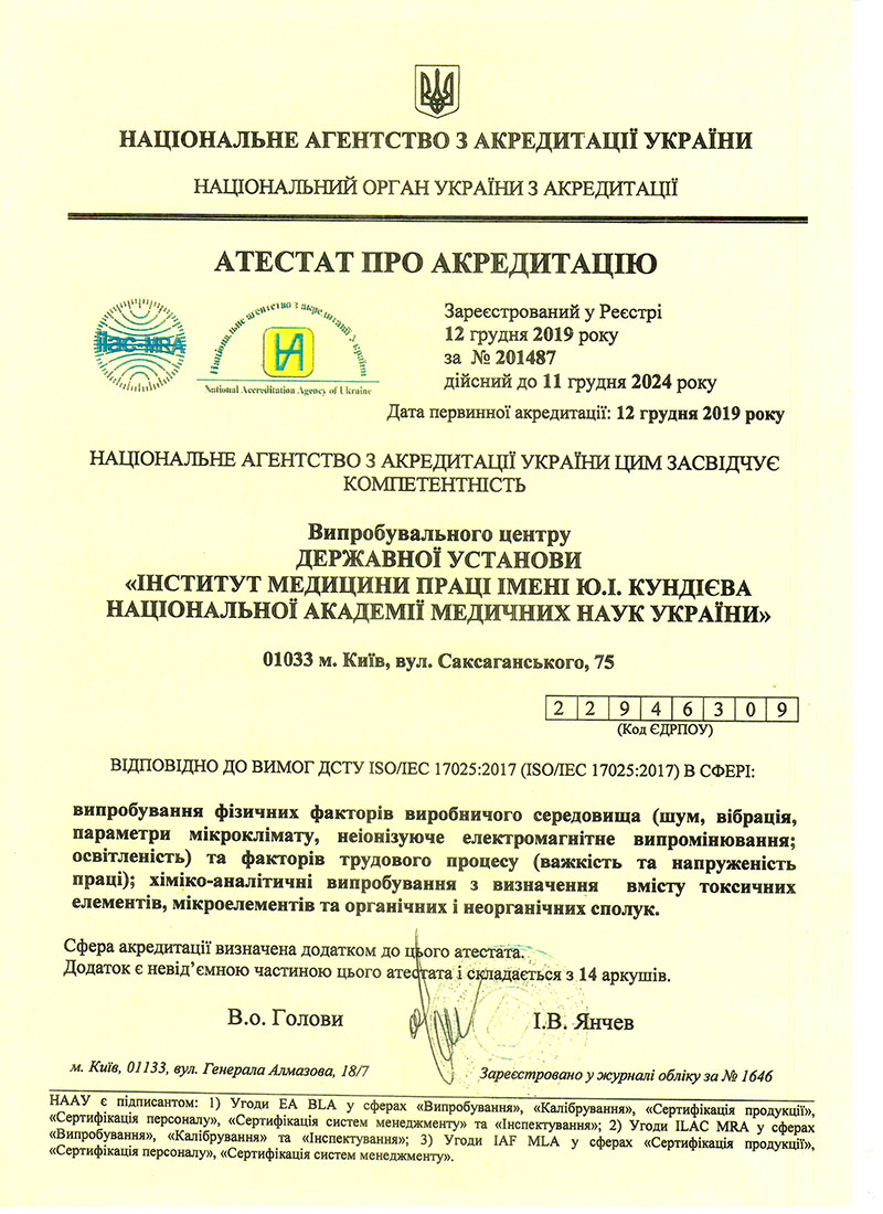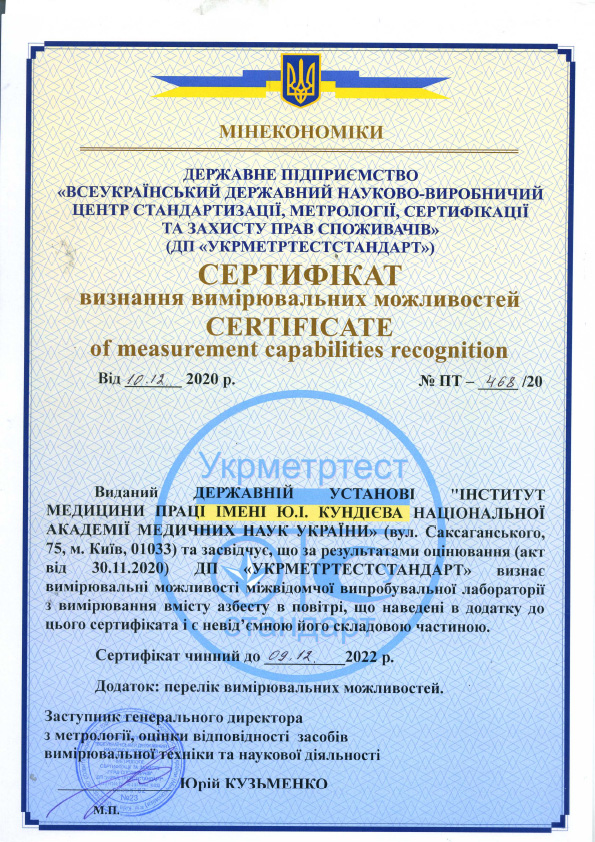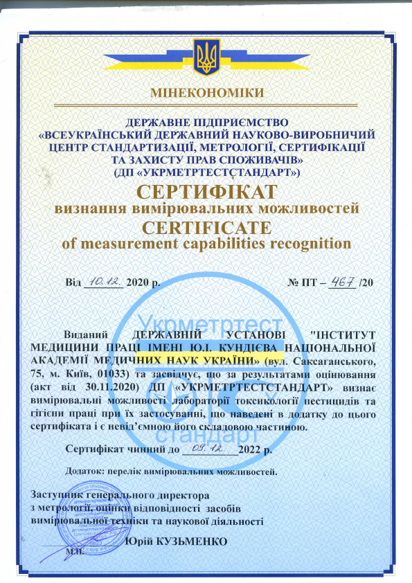 Recognizes the measuring capabilities of the laboratory of medical and biological criteria of occupational exposures and occupational hygiene in welding production